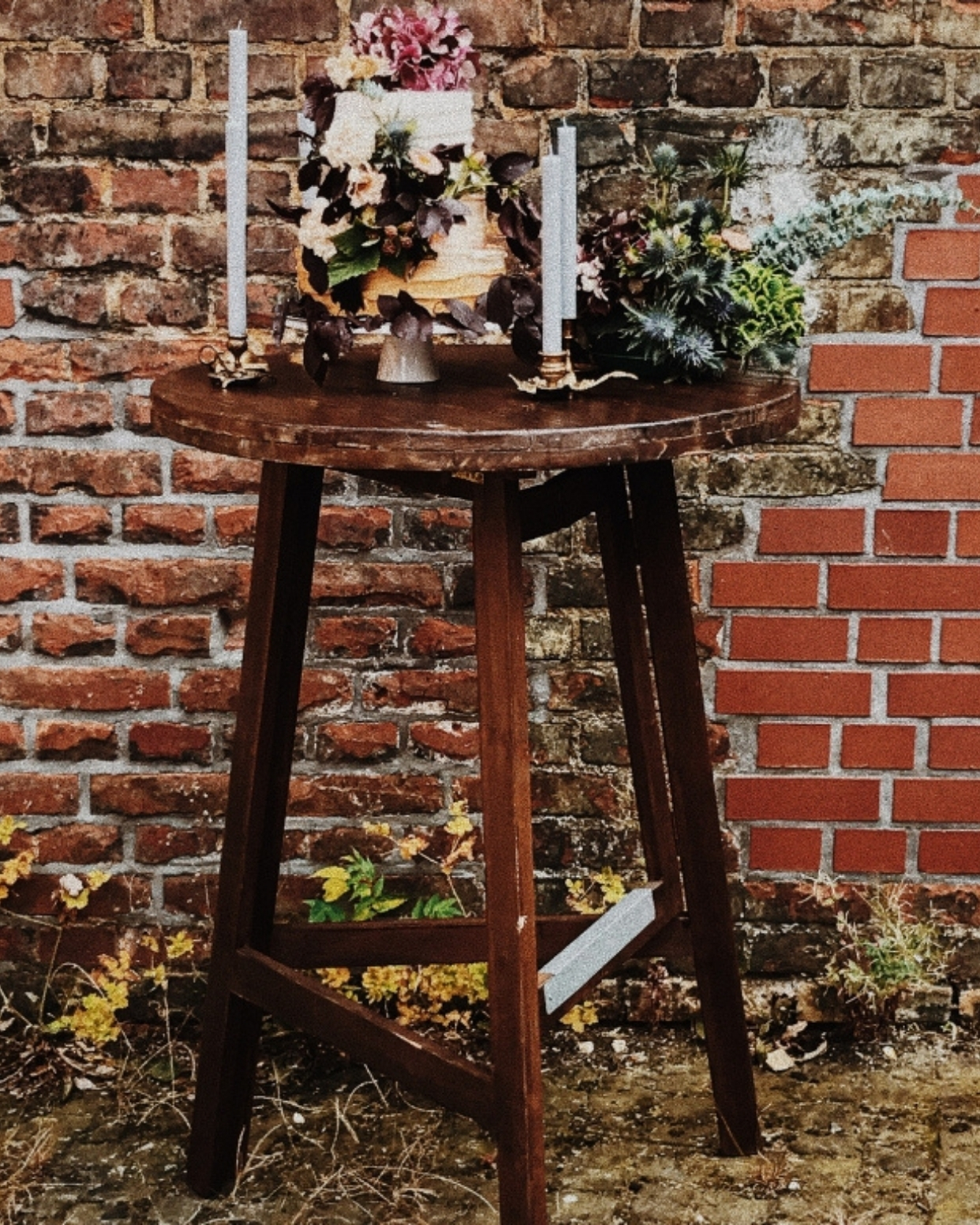 Passend zum restlichen Look haben wir für Euch Stehtische sowohl in dunkler Farbe als auch in Weiß.